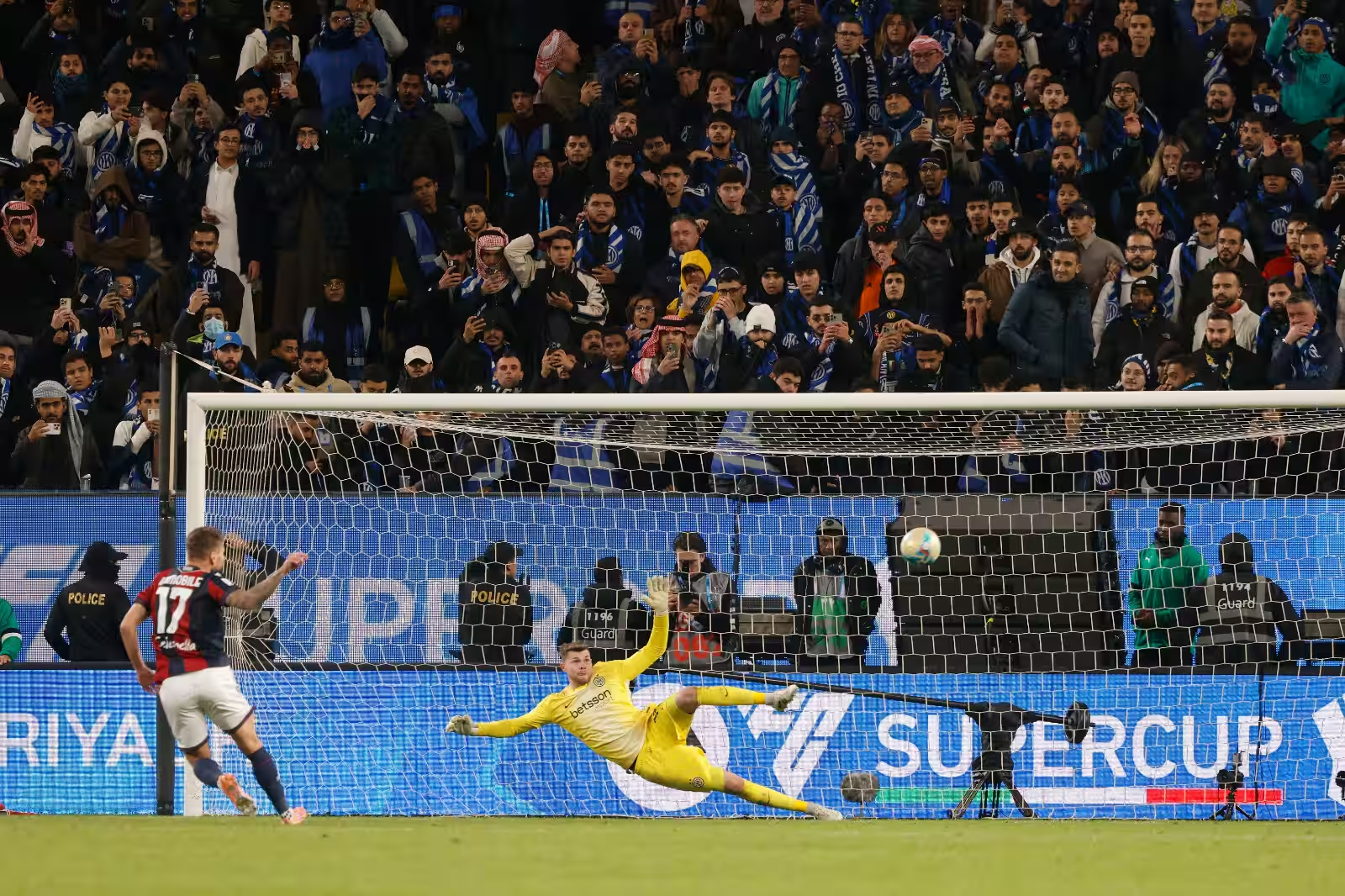 L’ultimo penalty, quello decisivo, è affidato a Ciro Immobile, che spiazza Martinez e manda il Bologna in finale. Una serata storica per i rossoblù, che ora sfideranno il Napoli per alzare la Supercoppa.